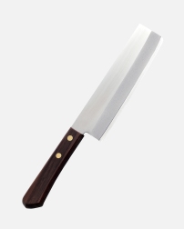 本則光 ステン割込包丁 薄刃 刃物用特殊鋼をステンレスの地金で挟み込んだ材料を使用しています。軽くて使いやすい…